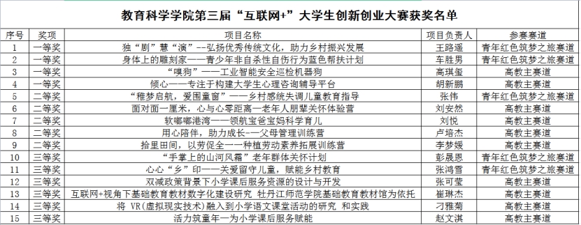 为积极响应习近平总书记关于“广大青年一定要勇于创新创造”的号召,全面贯彻落实二十大会议精神,进一步激 发学生创新创业热情,推进我校创新创业教育工作开展,积极落实牡丹江师范学院第九届“互联网+”大学生创新创业大赛校级选拔赛的通知,引导我院大学生树立创新创业意识,提升学生创新创业实践能力,我院于4月12日举办举办教育科学学院第三届“互联网+”大学生创新创业大赛。