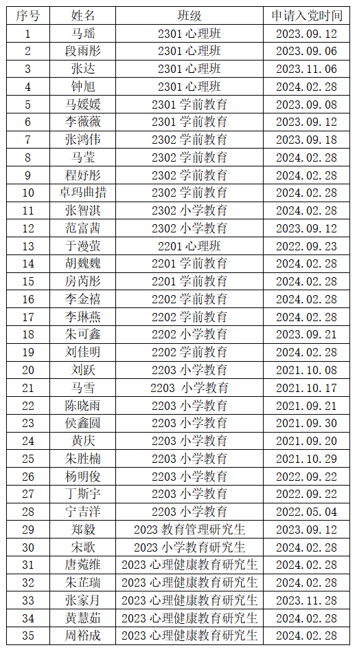 教育科学学院关于拟发展房芮彤等35人为入党积极分子的公示