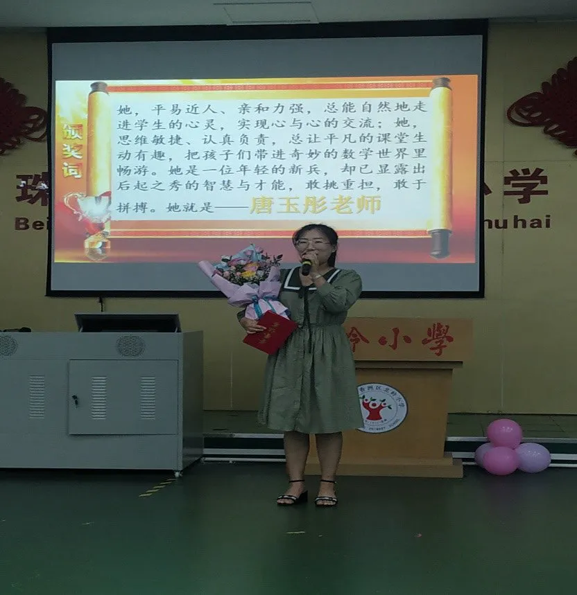 唐玉彤是一名毕业于牡丹江师范学院小学教育专业的硕士生,她平易近人、亲和力强,总能自然地走进学生的心灵,实现心与心的交流。她思维敏捷,总能让平凡的课堂变得生动有趣,让孩子们在奇妙的数学世界里畅游;她是一位后起之秀,有智慧、有才能、敢挑重担、敢于拼搏。