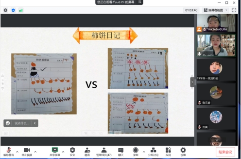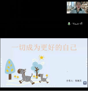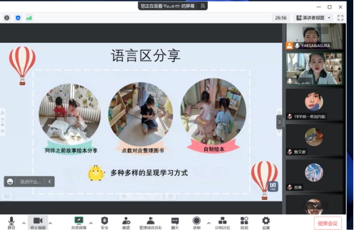 张婉玉学姐通过图片和视频的讲解从幼儿园介绍、一日生活及区域环境介绍、主题安排、主题审议、园本课程五个方面向大家介绍了她所在的杭州市钱塘区星华幼儿园的工作,让学弟学妹们对在幼儿园的工作有了一定的了解。此外,婉玉学姐分享了个人工作经验及教学方法,包括幼儿园的区角活动、课程安排等,这些工作经验经验对即将步入幼儿教师行列的毕业生们来说十分宝贵。