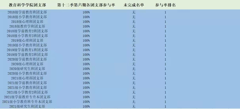 教育科学学院【青年大学习】网上主题团课第十二季第六期参与情况排行榜