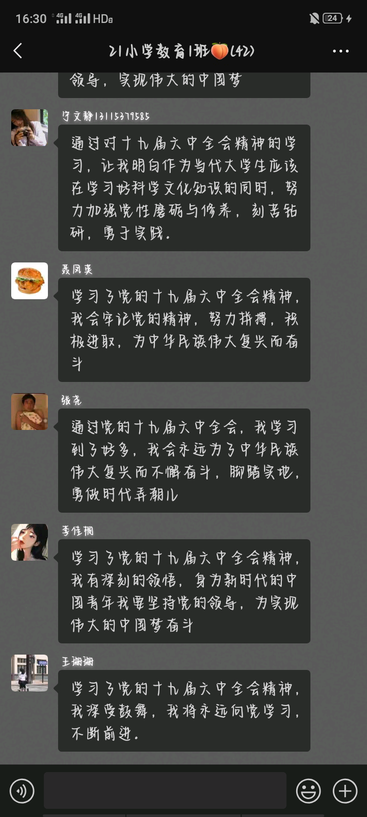 2021年11月8日至11日,中国共产党第十九届中央委员会第六次全体会议在北京胜利召开。此次全会是在建党一百周年之际,在世纪疫情和百年变局交织的复杂背景下,开启新征程的重要节点召开的,具有里程碑、历史性的意义。为进一步学习贯彻全会精神,教育科学学院的团员青年们于2021年11月27日通过线上集中学习、线上交流研讨、自学等多种形式,积极学习领会全会精神,并分享了学习感悟。