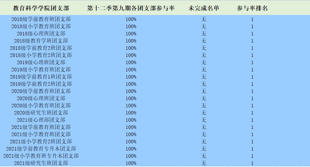 教育科学学院【青年大学习】网上主题团课 第十二季第九期参与情况排行榜
