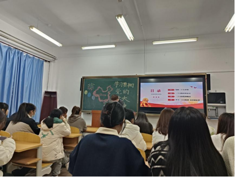 为欢庆党的二十大胜利召开,学习宣传贯彻党的二十大精神,抒发感党恩、听党话、跟党走的真挚情感,教育科学学院2022级学前教育二班于2022年11月19日14:00在外语楼606召开“学习宣传贯彻党的二十大精神”主题班会活动。