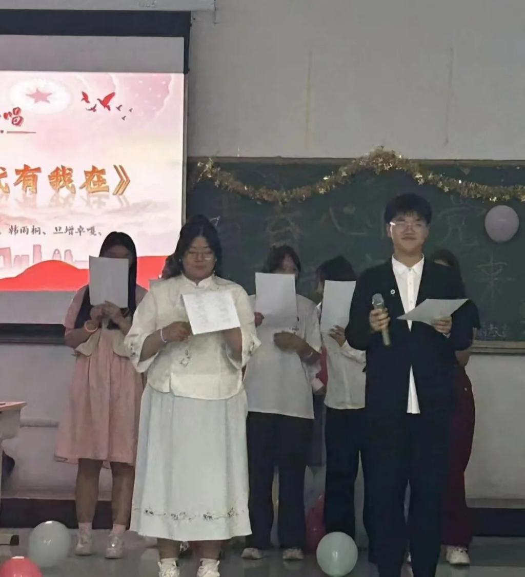活动第三项,才艺表演,同学们以自我之声发出青春颂歌。同学们以独唱大合唱的形式带给我们视听盛宴,随后紧跟着同学们充满感情与青春活力的朗诵。一股青春勃发之气在教室中回荡,铿锵有力,震撼人心。青年们正以奋斗的姿态接过历史的接力棒,成为新时代的主角。