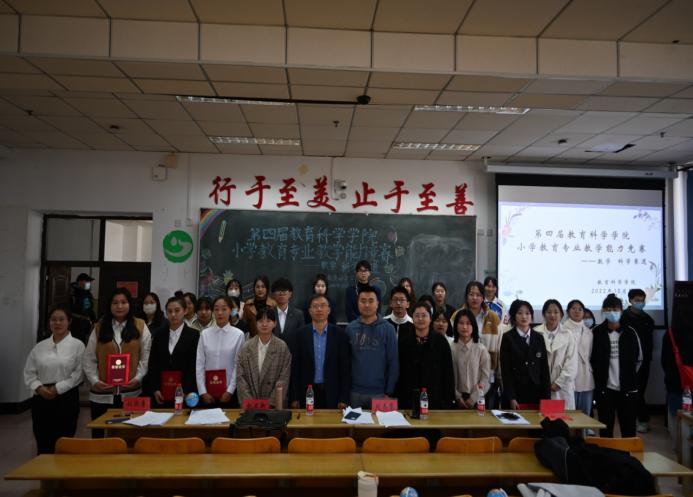 为了提高小学教育专业学生的教学水平和专业素养,促进学生专业成长,为学生搭建一个锻炼自己、展示风采的平台,教育科学学院小学教育专业于2022年10月15日上午8:00举办第四届小学教育专业教师技能竞赛。比赛分为三个会场同时进行,教育科学学院副院长田春艳教授,小学教育系主任姚雯雯老师,肖占君老师;副院长李树平教授,甄莹老师,张东亮老师;张雨老师,赵立新老师,刘志学老师分别作为评委出席了三个会场。