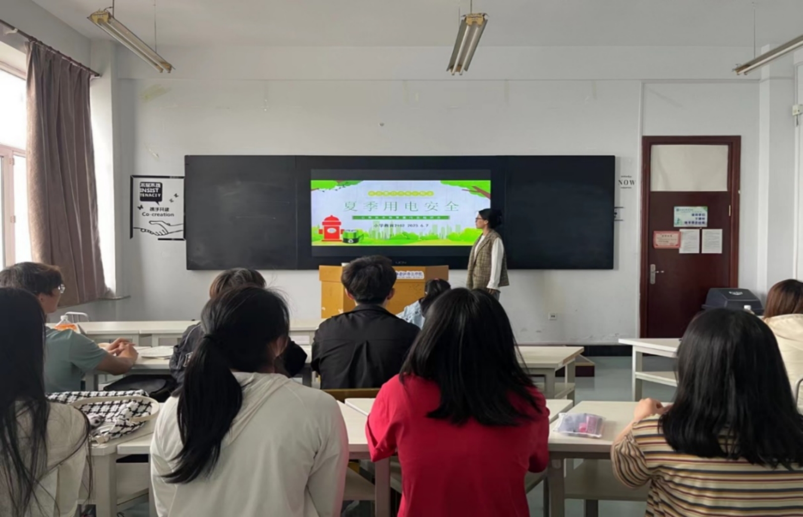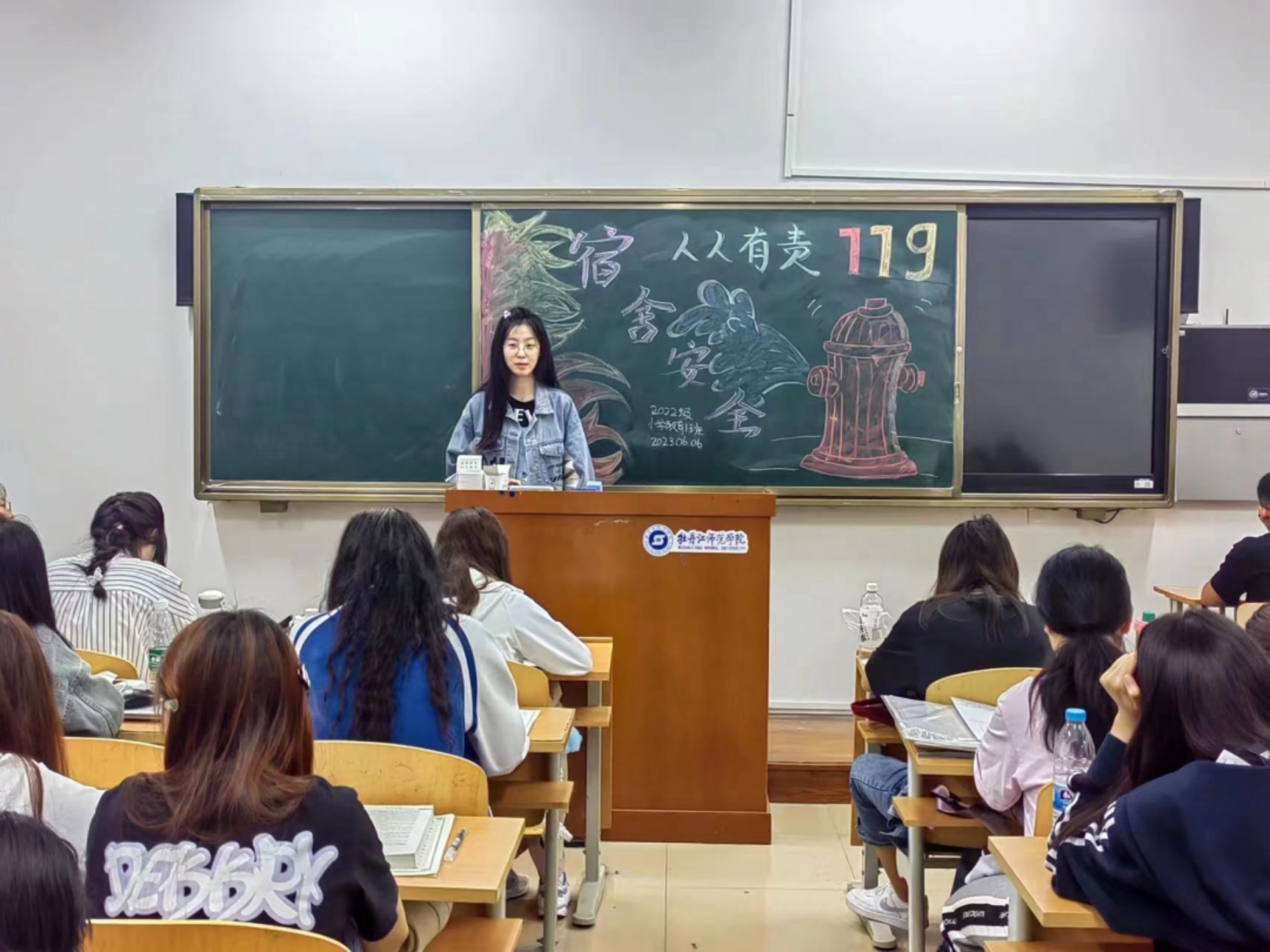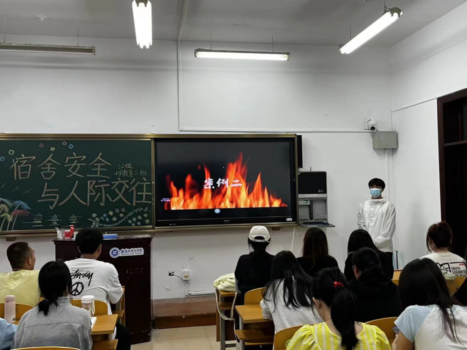 2022级小学教育二班通过案例讲述的方式,向同学们科普了容易引发寝室火灾的不规范用电、用火行为并展示了寝室发生火灾会带来的后果,这为同学们敲响了寝室防火的安全警钟!