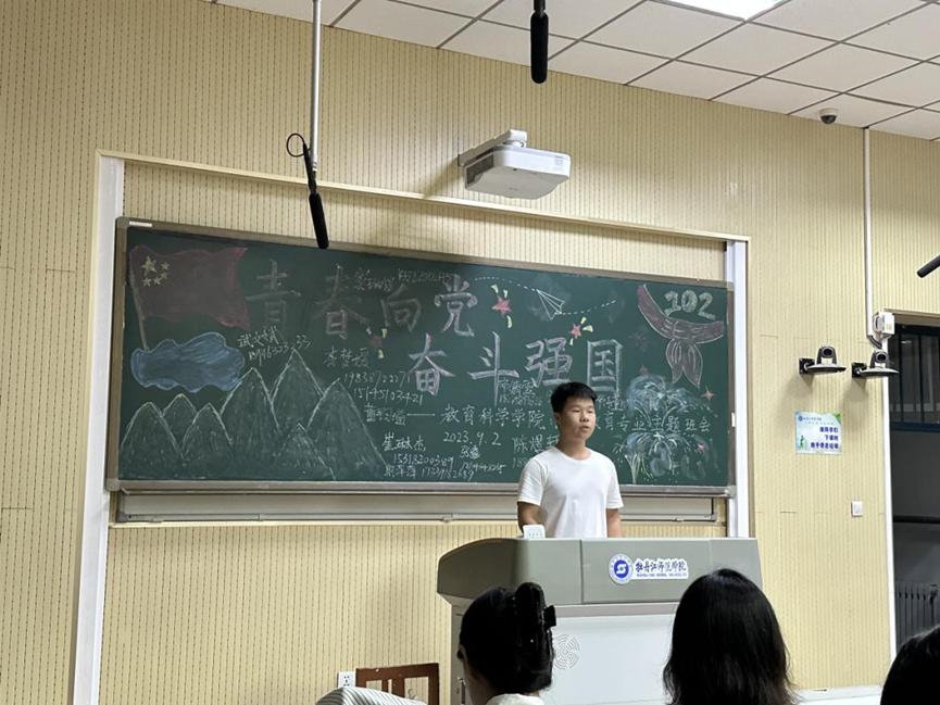 未觉三夏尽,时序已新秋。开学季来临,校门口的松树站得挺拔,喜迎同学们的到来!为创造一个良好的开端,明确奋斗目标,深入学习贯彻党的二十大精神和习近平新时代中国特色社会主义思想,激发我院学子爱党爱国热情,我院召开了以“青春向党,奋斗强国”为主题的班会。