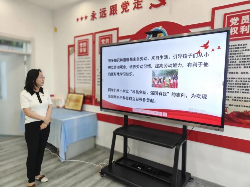集体交流研讨会过后,全体党员共同学习了由牡丹江师范学院王茜老师主持的《为强国建设民族复兴而读书——学习贯彻习近平总书记在北京育英学校考察时的讲话》主题党课。王茜老师提到,“很多知识和道理都来自劳动、来自生活。引导孩子们从小树立劳动观念,培养劳动习惯,提高劳动能力,有利于他们更好地学习知识。同学们从小树立“科技创新、强国有我”的志向,才能为实现我国高水平科技自立自强作更多贡献。