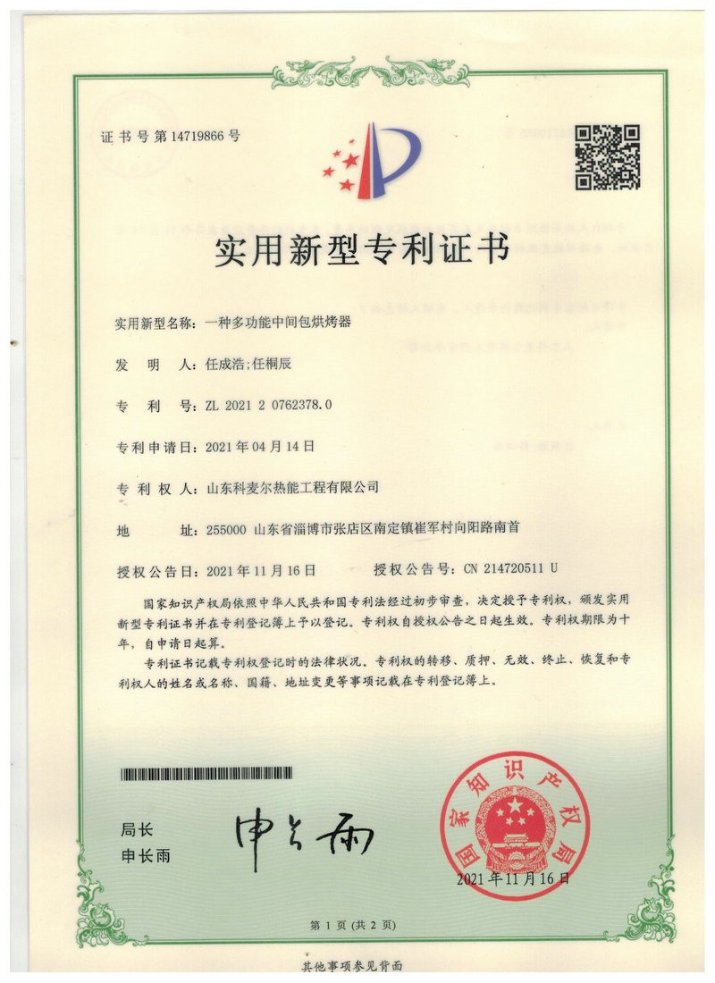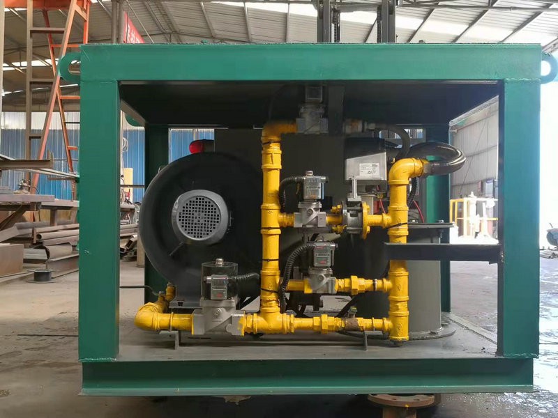 中间包烘烤器:包括燃烧器、鼓风机、助燃风管道系统和煤气管道系统,所述助燃风管道系统一端连接鼓风机,另一端接入位于燃烧器前的煤气管道系统,还包括通过控制煤气管道阀门开闭自动调节温度的控制系统,所述燃烧器为1-5个(根据膜胎尺寸确定),中间包工作层受热均匀,易脱模节能效果明显。